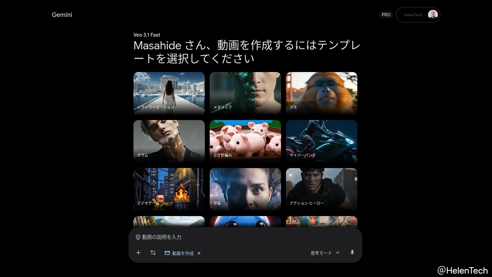 Gemini アプリの「動画を作成」にテンプレート機能が追加。ウェブ版で展開を確認