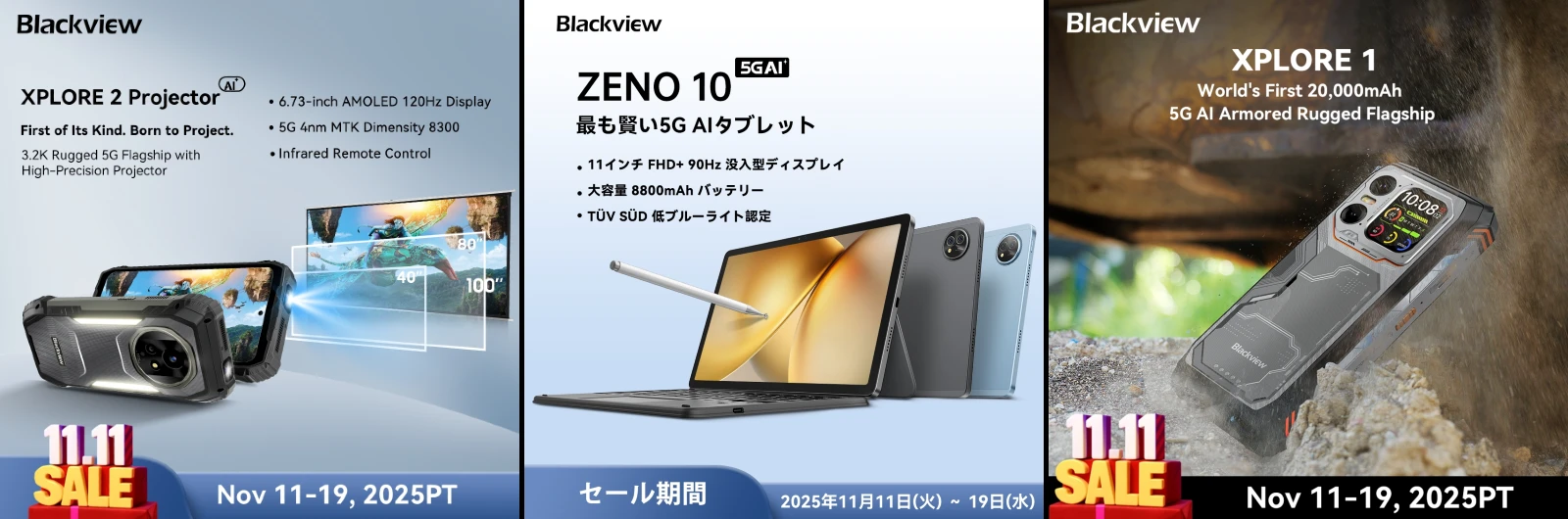 Blackview は 2025 年 11 月 19 日までの期間限定で、AliExpress で「Double 11 Carnival」セールを開催しています。堅牢スマートフォンや AI タブレット、スマートウォッチなどの人気製品が最大 67%OFF で購入できる、年内最安のキャンペーンです。