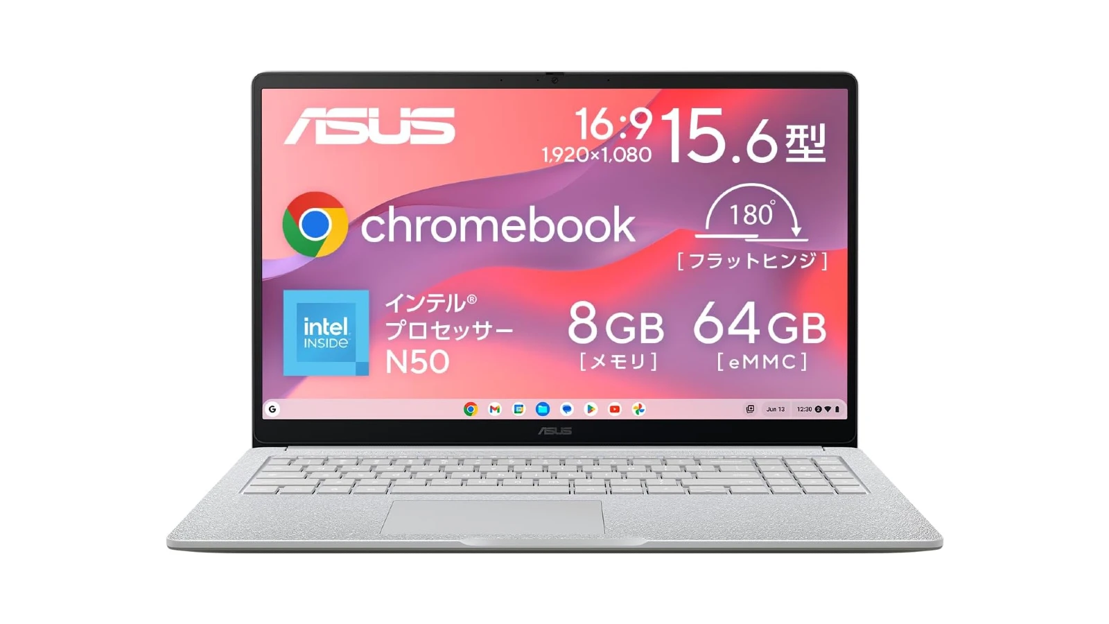 プロセッサには Intel N50、8GB RAM と 64GB eMMC ストレージを搭載しており、エントリークラスですがブラウザベースの作業やドキュメント、スプレッドシート、スライドを使った事務作業、オンライン会議への参加もスムーズに行え、少し余裕のある性能となっています。