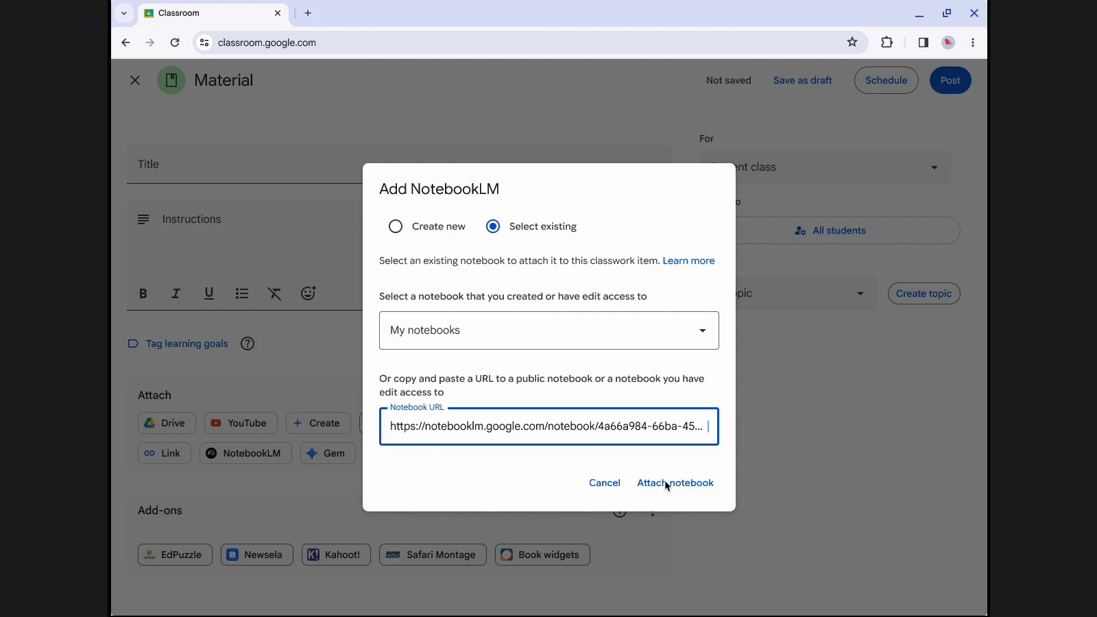 Google Classroom、NotebookLM の一般公開ノートブックを課題に添付可能に
